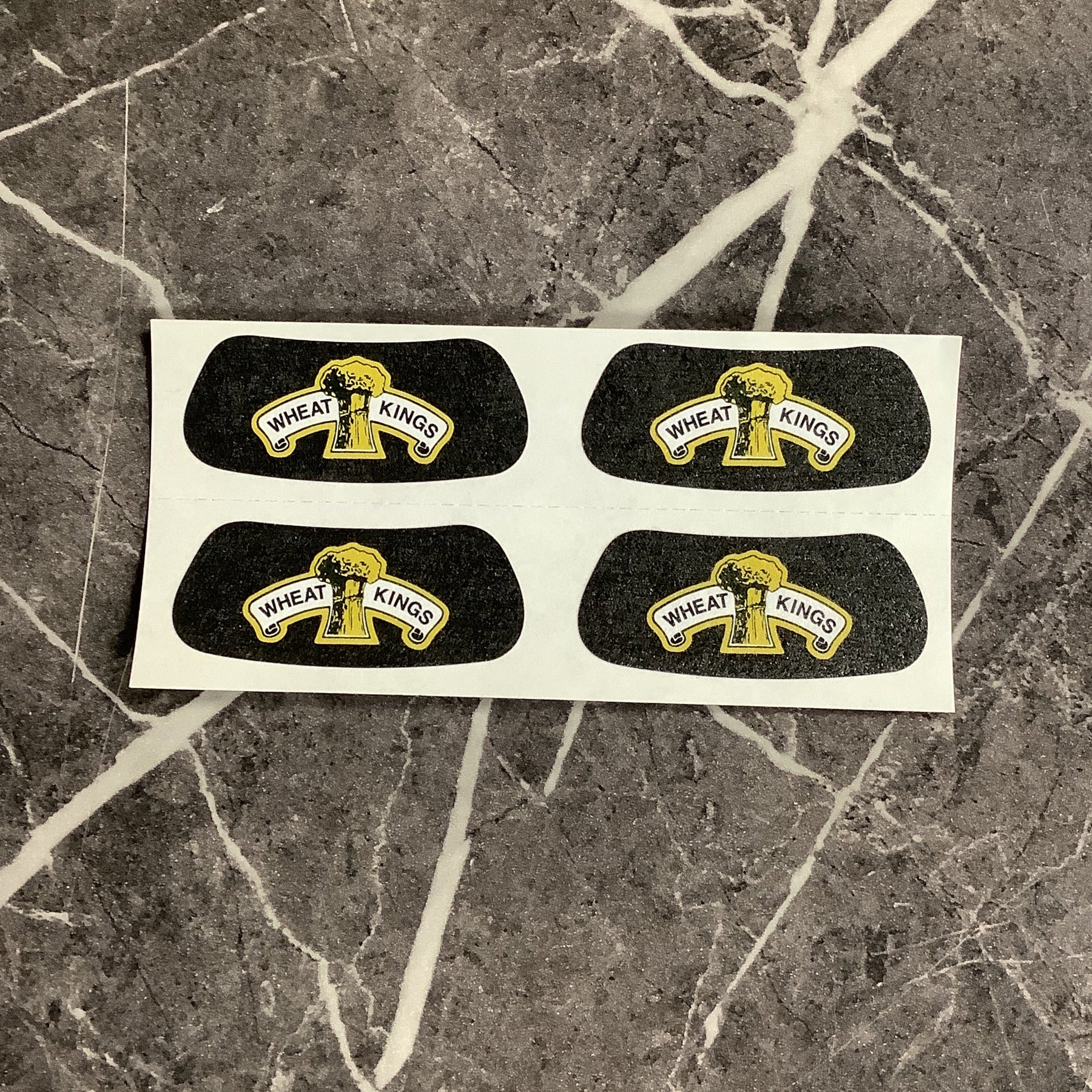 Game day ready! These easy-to-apply eye black stickers show off your Wheat Kings pride and add a bold, on-ice look for fans of all ages.